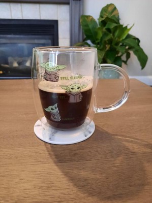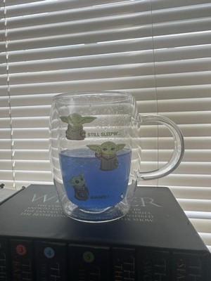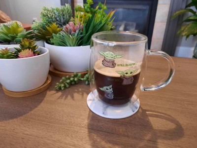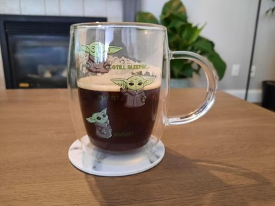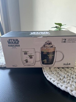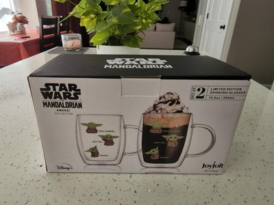 JoyJolt Star Wars™ Awake Mandalorian The Child Glass Mugs - 13.5 oz - Set of 2 Double Walled Coffee Mugs