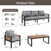 JUJABU 4-Piece Metal Patio Conversation Set 5 People Seating with Acacia Wood Armrests, Removable Cushions and Solid Wood Coffee Table