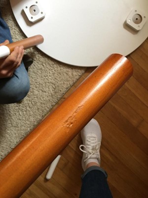 Table itself is super cute, but my complaint comes from the overall quality. One of the table legs was painted pretty sloppy and has small scratches. Literally looks like I tried to do a DIY on the legs where it's painted white. I'm going to attempt to touch up myself with a furniture marker, rather than go through the trouble of replacement process.