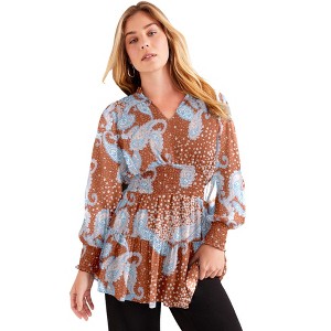 June + Vie by Roaman's Smocked Georgette Tunic - 1 of 4