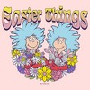 - Grab a basket and go on a hunt for this Easter juniors' skimmer t-shirt! Featuring Thing 1 and Thing 2 holding cute bunnies and colorful flowers, with the statement: "Easter Things" printed above them in a gradient style that fades from yellow to pink.