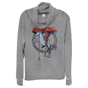 Junior's Marvel Deadpool Unicorn Ride Cowl Neck Sweatshirt - 1 of 4