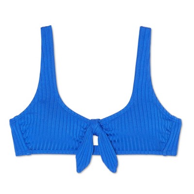 You'll be hitting the beach in style with this Ribbed Cut-Out Tie-Front Bralette Bikini Top from Xhilaration™. This bikini top has a classic bralette design with adjustable straps and a fastener at the back. The ribbed material mixed with the front bunny tie and cutout will elevate your swim look, making this a swim top you reach for again and again.
