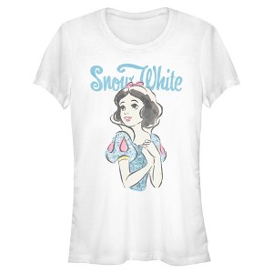• Heigh-ho your way into style and make every day a whistle with this new juniors' t-shirt! Featuring a watercolor-inspired design of Snow White in a sweet pose, wearing her iconic dress adorned with a floral print across the front.