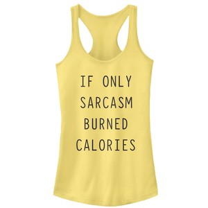 Juniors Womens CHIN UP Sarcasm Burns Calories Racerback Tank Top - 1 of 3