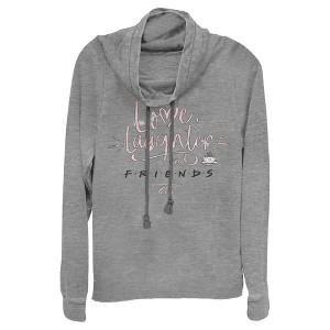 Juniors Womens Friends Love and Laughter Cowl Neck Sweatshirt - 1 of 3