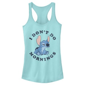 Juniors Womens Lilo & Stitch I Don't Do Mornings Light Blue Racerback Tank Top - 1 of 4