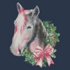 • Strut your stuff with this stylish new juniors' racerback tank top that is perfect for the holidays! Featuring a horse in a Christmas wreath and a pink bow across the front.