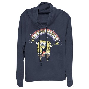 Juniors Womens SpongeBob SquarePants Imagination Rainbow Cowl Neck Sweatshirt - 1 of 3