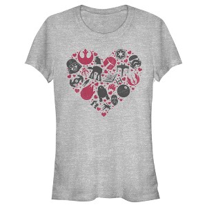 Juniors Womens Star Wars Valentine's Day Heart Icons T-Shirt - 1 of 4