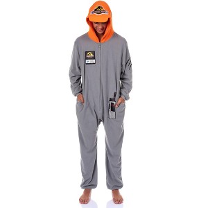 Jurassic Park Union Suit Adult Crew Member One Piece Hooded Costume Pajama - 1 of 4