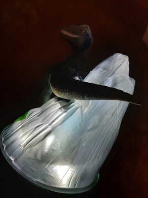 15 minute night light for any dino lover. Comes with batteries with it. The light brightens up around blu for 15 minutes and then automatically shuts off. Just press the button in the front for light. She is very well detailed just like the movie. Great quality on the night light that you can take anywhere without a cord.