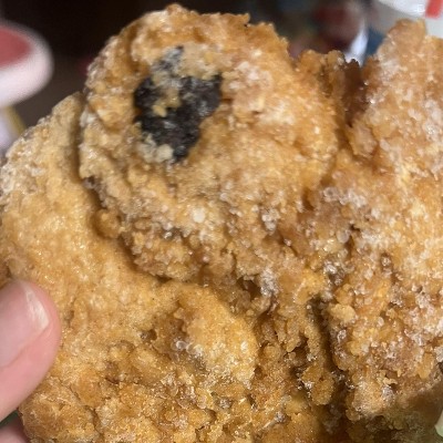 My package was opened from the back, also the chicken had a weird black spot on it.
