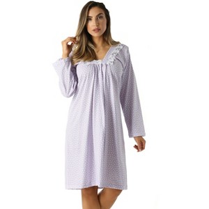 Just Love Womens Long Sleeve Cotton Nightgown - V-Neck PJ Sleepwear with Lace Trim - 1 of 2