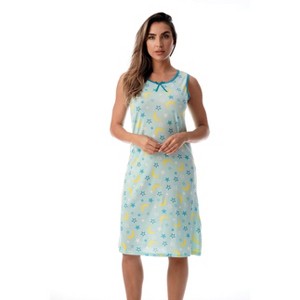 Incredible Comfort, Effortless Style Discover the ultimate in relaxation with our sleeveless nightgown, designed for dreamy nights and laid-back lounging. Crafted from luxuriously soft brushed jersey knit fabric, this sleep dress feels as good as it looks. Whether you're curling up in bed, unwinding after a long day, or tackling household tasks in comfort, this nightie is your perfect companion. A Touch of Charm Who says bedtime can’t be stylish? This nightgown blends effortless comfort with a flattering silhouette to keep you looking cute around the clock. The feminine bow detail at the neckline adds a delicate touch, while the choice of floral, celestial, and butterfly prints offers something for every taste. With vibrant colors and a relaxed yet shapely fit, you’ll feel as fabulous as you do cozy.