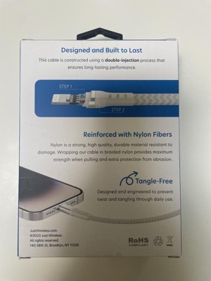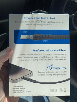 This Just Wireless Lightning to USB-C cable is well made and should last a long time. The 6’ length is a good option when 10’ is a bit too long. It’s reinforced and tangle-free. I will probably get more of these.