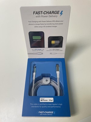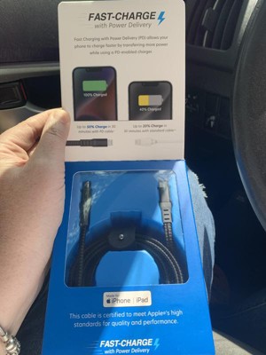 I’m so impressed with the quality of this lightning to USB – C cable from Just Wireless. The cord itself is so sturdy, with a flexible woven cover that should hold up over many uses. The 6 foot length is perfect, and I love the leather strap that allows me to wrap up the cord neatly when I’m not using it. The connectors seem extremely sturdy and should not bend or break while in use. And best of all, my devices are charging super fast with the “fast charge power delivery.” It’s the nicest cable I’ve ever owned. I’m using this cable to charge my iPhone and iPad, and I’m thrilled with its performance.