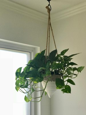 A: The planter features a jute rope that allows it to be hung from the ceiling, wall, or window.