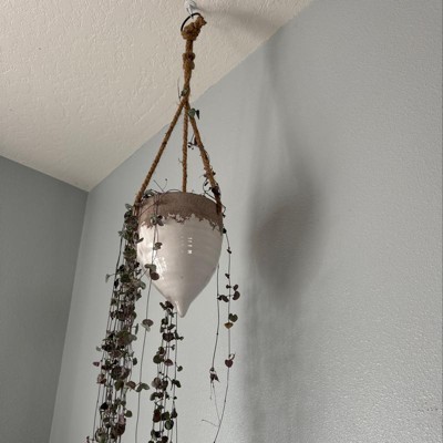 Jute Hanging Planter (8.5") - Storied Home: Stoneware, Round, Indoor, Nautical, Farmhouse, Ceiling Hanging Decor