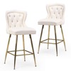 JVNOXK Bar Stools Set of 2, Velvet Counter Height Bar Stools with Metal Legs, Button Tufted and Nailheads Trim, Wing-Back Bar Beige