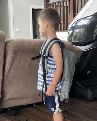 Grey bookbag with chest clip