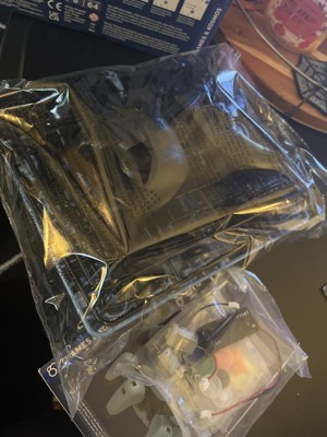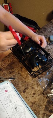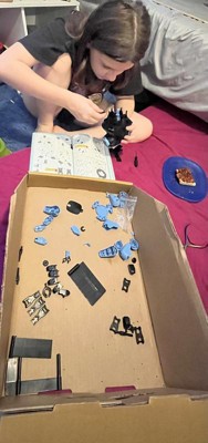 Originally my son was super excited to build and play with this robot. That is, until he opened the box and saw the pieces! It’s a lot. And they’re all on that plastic grid where you have to break off each piece and the instructions tell you to sand down each piece to make sure there’s no nubs left. He got overwhelmed with it all and never ended up finishing it. Maybe he will come back to it on a rainy day!