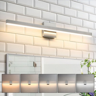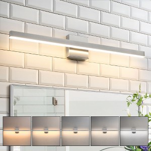 - Choose from 5 color temperatures (2700K-5000K) and adjust the brightness to create the perfect ambiance. From a warm, relaxing glow to crisp, cool light for makeup, it's all at your fingertips. (Dimmer switch not included).