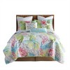 - COORDINATE YOUR ROOM DECOR: Create a wonderful bedroom space with our coordinated reversible quilt. The green, teal, pink, blue and white design brings tropical vibrant accents into your home and will match a variety of different looks and bedroom decor. You can also freshen your room with other items from the Kalani collection.