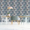 A full roll of this product is 20.5 inches wide and 396 inches long. A full roll can cover up to 56 square feet depending on the design match and pattern repeat. A sample of this product is 8 inches by 11 inches. The contemporary Kaleidoscope Denim wallpaper is sure to modernize any living space. This Geometric design creates a depth in the design with an optical illusion. It is finished off with a metallic embellishment which gives a touch of luxury, sure to transform any living space. This design comes in three colorways sure to bring the look of luxury to the next level. Offers a smooth, untextured finish. Straight match with 20.9 inch pattern repeat.
