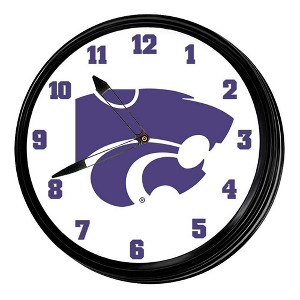 This premium Kansas State University Retro Lighted Wall Clock clock will be sure to add the finishing touch to any room in your home or office. This piece is injection molded and features a high-resolution, high gloss digitally printed face. Comes with an 8 foot power cord and an on/off pull switch for the light. LED illuminated. Hanging hardware and light bulb included. This is an officially licensed product of Kansas State and made in the USA.