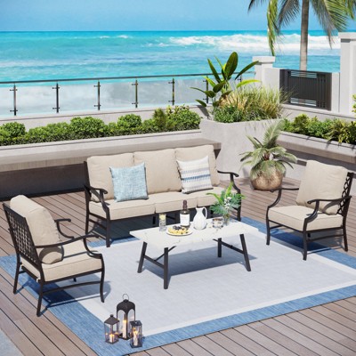 Kaplan 5pc Outdoor Sofa Set - Oatmeal - Crosley: Weather-Resistant Steel Frame, Removable Cushions, Patio Seating for 5