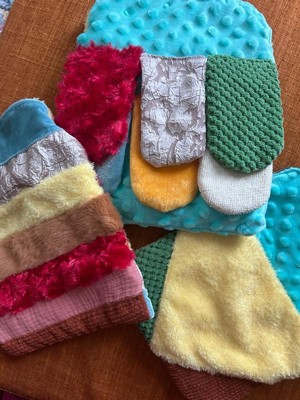 [This review was collected as part of a promotion.] My baby girl was so excited when she heard the crinkling in these pockets. The different textures and Velcro pockets were so nice to let her little hands explore. Sensory toys is what immediately came to mind. We are all about sensory toys in this household and these baby toys fit the bill. While my seven month old enjoyed these, my three year old did as well. I could see these as an item that would grow with my baby, well into her toddler years. They are really well made and the material is of very good quality. Not your typical crinkle toy you might grab off the shelf at a chain store.
