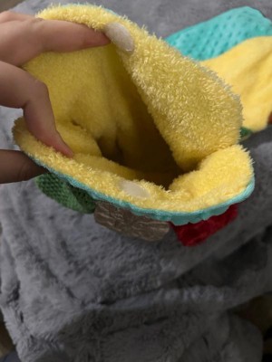 [This review was collected as part of a promotion.] I like the different textures and think young infants would like exploring the crinkle sounds and textures, while older infants could enjoy the pocket aspect too. I did remove a star because I don’t really think they’re worth the price.