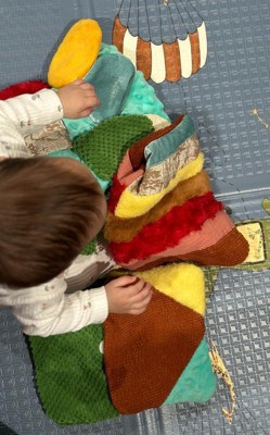 [This review was collected as part of a promotion.] I’m not sure the use of these? They are pretty large pockets. My 10 month old twins don’t show any interest in them. They may be too old/young? The different textures of fabric and sound is great. Crinkly, soft, shaggy, etc. I will keep trying to introduce them into daily play!
