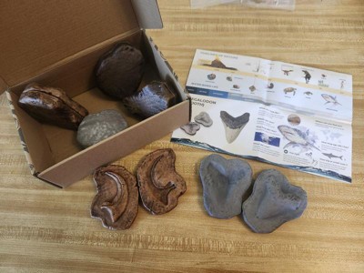 - Features fossils of the following; Megalodon Tooth, Tyrannosaurus Rex Claw, Ammonite, Trilobite, Gastropods, and Velociraptor Claw