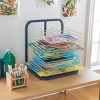 Store children's works-in-progress safely and without making a mess using this tabletop Multipurpose Drying Rack. Removable wire racks provide easy access to paintings or projects on any of the many levels. Easy-to-clean racks and small scale make this durable piece an ideal addition to the classroom. Measures 20.5"L x 17"W x 22.25"H.