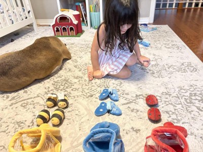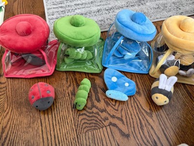 [This review was collected as part of a promotion.] We are currently obsessed with bugs in our house, so this couldn’t have come at a more perfect time. These are super soft and adorable, and much bigger than I anticipated however, the “jars” are plastic and don’t hold their shape very well so the lids don’t fit on great. They are wonderful learning tools and are super cute and safe for toddlers!