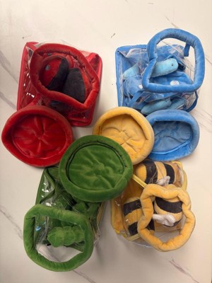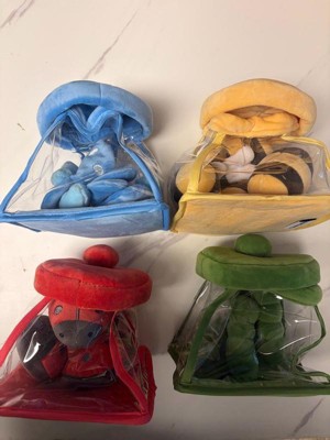 [This review was collected as part of a promotion.] These little bug “jars” are so cute. They’re soft and small for little hands. Haven’t had to wash them but if placed in a laundry bag they’ll survive I think. Spot clean as necessary otherwise. So cute!