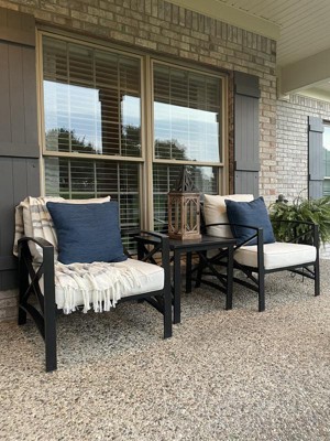 Spend quality time with your family and friends in the oasis of your outdoor living space completed with the Kaplan outdoor furniture. Featuring plush cushions, spacious designs, and ergonomic support. Each piece is crafted with an all-weather rust-resistant steel frame to ensure years of use with minimal maintenance. Classic x-bar supports provide visual interest to the frames, while dense cushions feature contrast piping. The cushion covers are resistant to UV rays, fading, and moisture. Each tabletop is slatted for style.