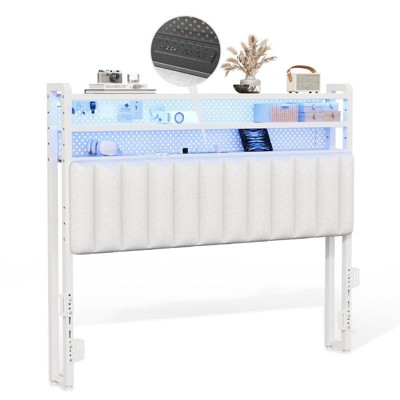 Karl Home Twin Full Queen King Size Headboard, Adjustable Upholstered Headboard with 2 Tier Shelves and Pegboard with Charging Stations and LED Lights
