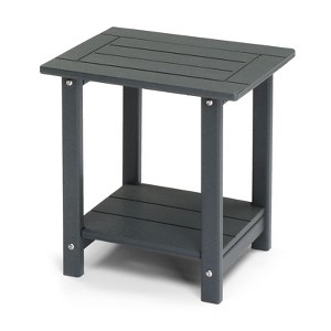 Upgrade your living space with this sleek and functional gray rectangular double-layer HDPE side table. Crafted from high-quality, weather-resistant HDPE material, this side table is designed to enhance both indoor and outdoor settings. Its double-layer design provides ample space for storing and displaying items, while its sturdy construction ensures durability and stability. Perfect for placing next to a sofa, armchair, or bed, this side table combines practicality with modern aesthetics.