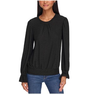 Karl Lagerfeld Womens Ruffled Cuff Pullover Blouse, black, Small