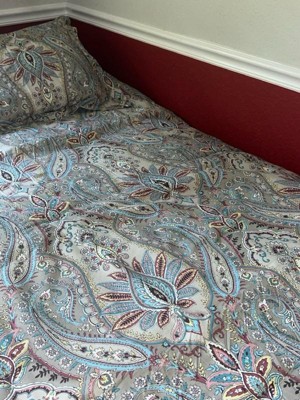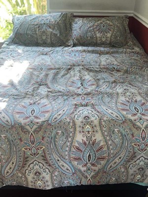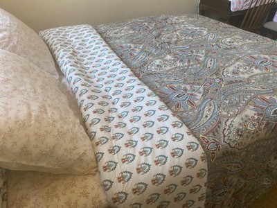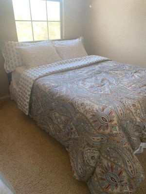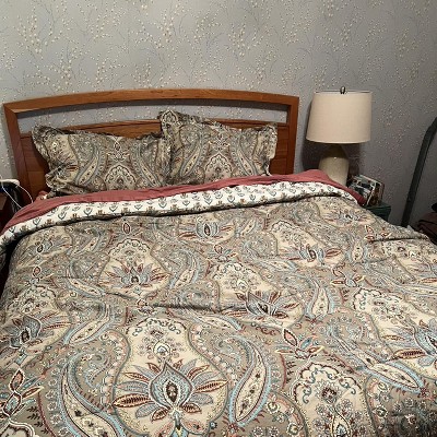 [This review was collected as part of a promotion.] This comforter set has a beautiful pattern and is reversible! Not sure if I would put the lighter side as the main look, though. It is very nice just popping out on top of the paisley, though. It is plush and good quality, but I would not say it is excellent quality for what they charge in the stores. Glad I was gifted this for a review. I like it enough to use, but might not have kept it if I purchased it myself. I do enjoy the color scheme - it is easy to match sheets and bedroom decor.
