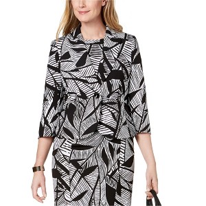 Kasper Womens Leaf Print One Button Blazer Jacket, black, 2P
