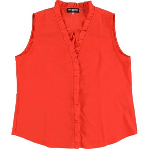 Kasper Womens Ruffled Button Down Blouse, brightred, Large