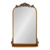 The Arendahl wall mirror brings a brilliant and decadent accent to any traditional home design. This wall mirror features a baroque-inspired design, with a resin garland crown cascading down an arched iron frame. The stunning antique gold finish brings it together as a vintage piece to display anywhere in your home. This version of the Arendahl features a functional shelf to place some small decor accents or necessary household items. Due to its hand-finished craftsmanship, each piece may vary in appearance. Showcase it in your living room, bedroom, entryway, bathroom vanity, or dining room for an elegant, conversation-starting focal point. Use the fabulous Arendahl wall mirror to bring dimension to your smaller spaces, opening up the area, and illuminating the darker corners. Proudly exhibit the versatile Arendahl mirror, measuring 16 inches wide by 25 inches tall, providing enough space to create a fantastic wall statement. The functional shelf has a depth of 4.5 inches for ample display and storage. This framed mirror is also easy to hang, with metal keyhole wall hangers discreetly and securely attached to the back. There's no better way to bring an elegant, old-school design aesthetic to your home than with this beautiful accent mirror.