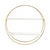 - Circle Gold Shelf: This design features two sleek white shelves in a gold, circular metal frame for a glamorous, modern appeal