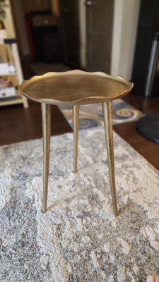 [This review was collected as part of a promotion.] This table is beautiful and sturdy and can be used for so many purposes. It took only a minute to put together. The legs fit on snuggly and there’s no wobbling. The gold color fits right in with most decor, you can use it in a formal dining room, or more casually in a family room. Perfect for a plant, cute decor, a vase of flowers, a serving pitcher, etc. the size is perfect to tuck it into a corner so it’s still easily seen, but out of way.