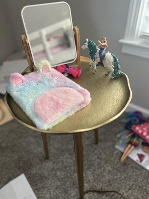 [This review was collected as part of a promotion.] I love unique furniture pieces, and this gold metal side table from Kate and Laurel is both stylish and unique! It's stained gold and blends well with our bedroom's colors, Gold and Navy Blue. The table area is just right, enough room for my lamp and books I am reading. It's sturdy no tipping, and was really easy to assemble! I plan to order another for my husband's side of the bed!