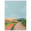 The artwork depicts an abstract landscape with rolling hills and a winding path. The hills are painted in soft, pastel colors, creating a serene and harmonious scene. The sky is a clear blue, complementing the earthy tones of the landscape. This Kate and Laurel canvas art print was created by July Art Prints and printed by Kate and Laurel in Waunakee WI. This modern floating canvas art is sure to bring joy to your space. Our design team curates art that will fit perfectly in any room of your home. Showcase this art in your living room, bedroom, home office, kitchen, bathroom, nursery, or anywhere you want to bring a little beauty and charm to your walls. Specializing in home decor, we are continually bringing timeless works of art for the traditional decorator as well as trend-forward pieces for that eclectic art lover. Our high-quality framed canvas art also makes excellent gifts for birthdays, holidays, or housewarming parties. Printed on gallery-wrapped canvas and framed with a simple gallery frame this wall art is easy to display on the wall and will match with any decor style. The outside display dimensions are 28 in x 38 in by 1.6 in Print Name: "Beautiful Landscape with Road"
